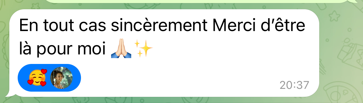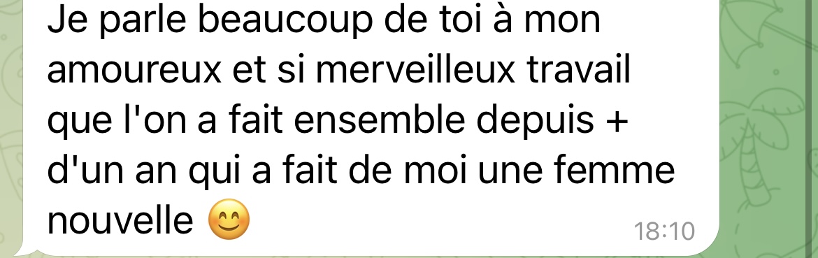 🟨 Un suivi par audio via Telegram : nous échangeons des vocaux entre les séances : questions, partages de tes réussites, clés supplémentaires, soutien.